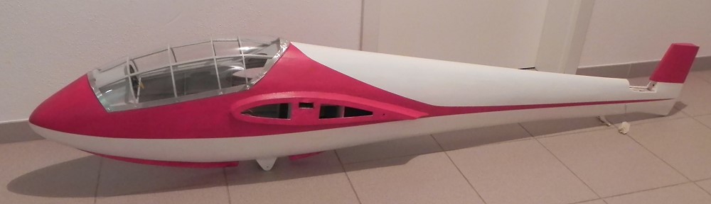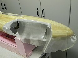Die rechte Hälfte des Rumpfes ist mit 25 g/m²-Glasmatte überzogen. |