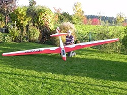 Ein Wochenende mit Farbe, Klebeband, Rolle und Klebebuchstaben und der Flieger sieht schon fast fertig aus. |