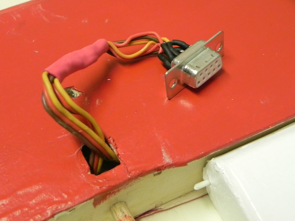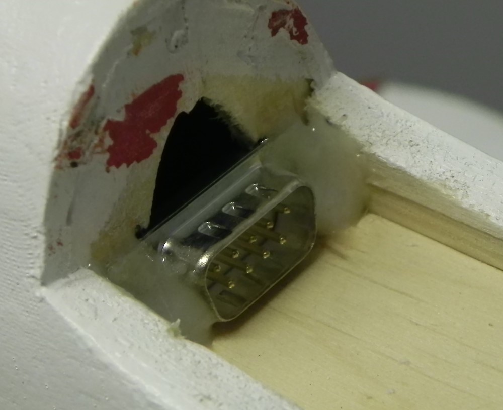 Die HLW-Servos stecke ich mit einem Sub-D-Stecker an, den ich hier mit dem Rumpf verklebt habe.