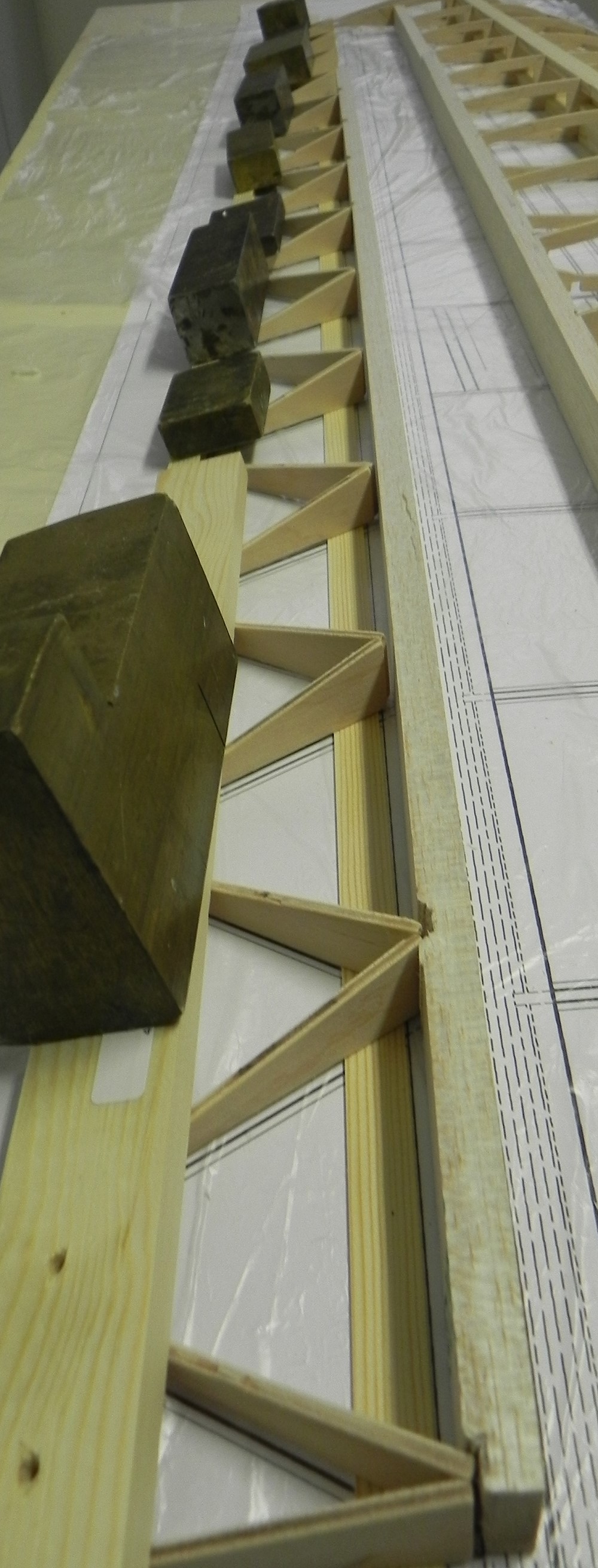 2 Dreikant-Balsaleisten oben und unten täuschen eine