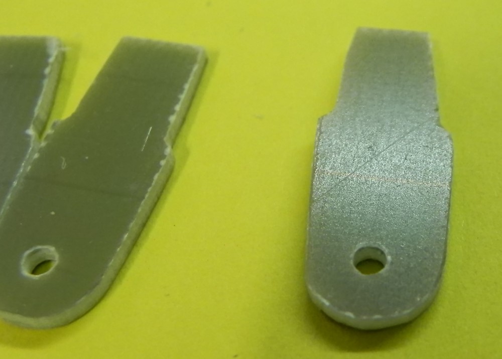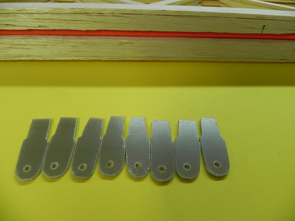 Das sind die Querruderscharniere; 8 Stück 1,5mm GfK, ein