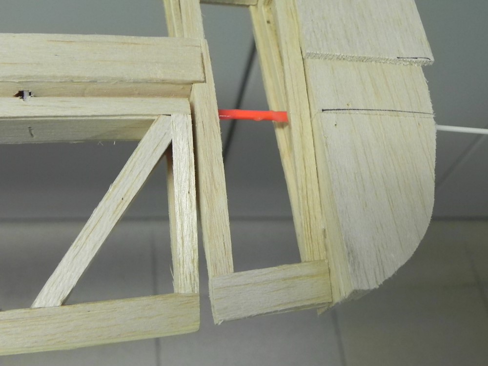 Die 1mm Kiefernendleiste wurde wieder mit 1mm Balsa